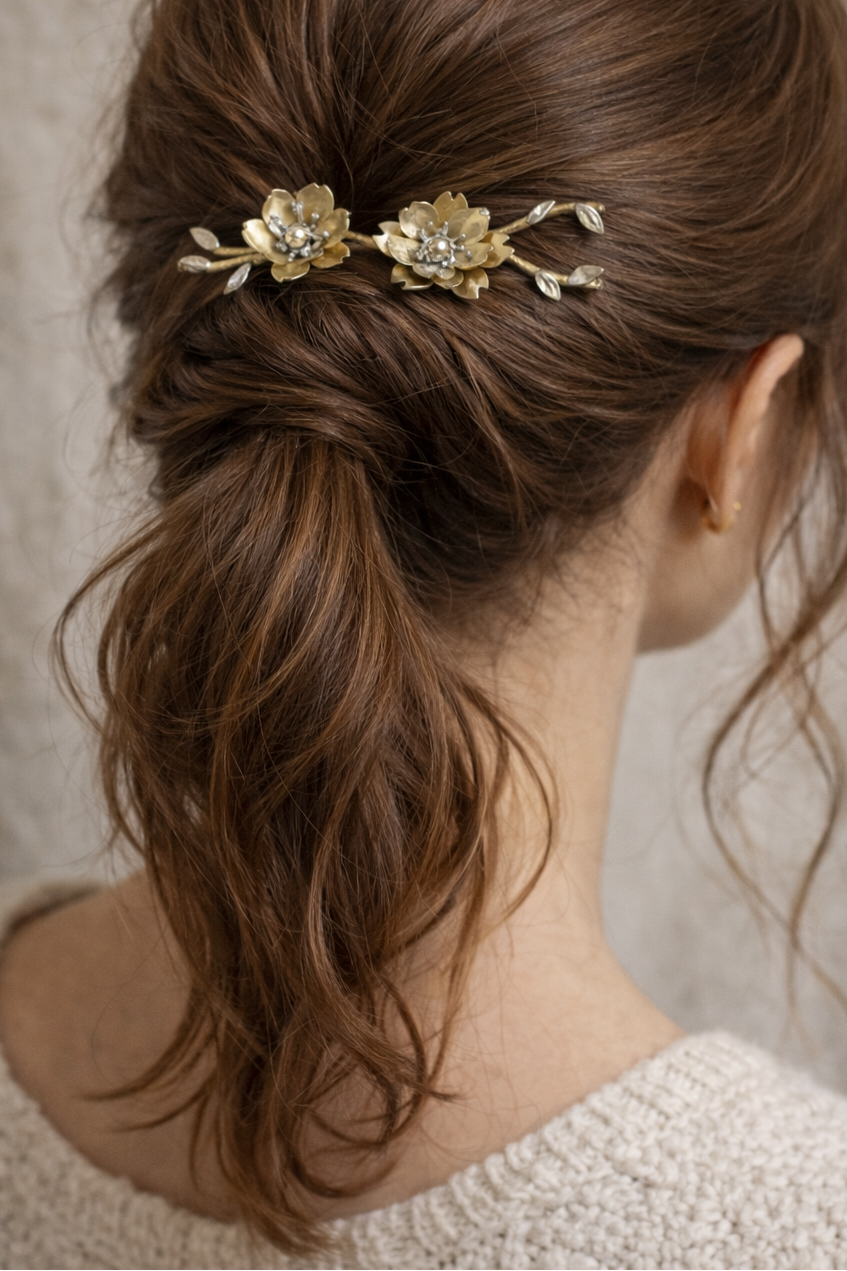 I create individually handcrafted hair accessories and jewellery in mixed metals, inspired by history, nature and organic texture. Each piece is shaped with authenticity, balance and enduring wear in mind — sculptural forms designed to feel distinctive, personal and quietly powerful.